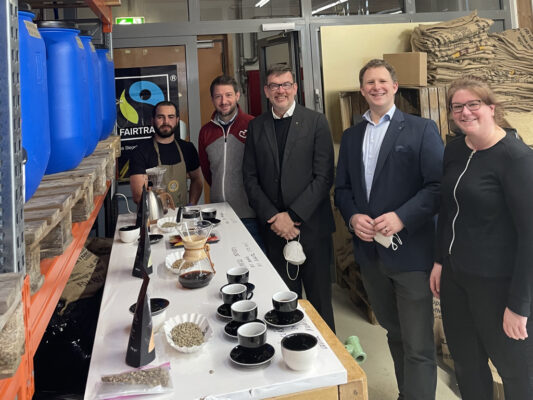 Generalpräses Christoph Huber und Generalsekretär Dr. Markus Demele besuchen die Kolping Röstwerkstatt in Brakel